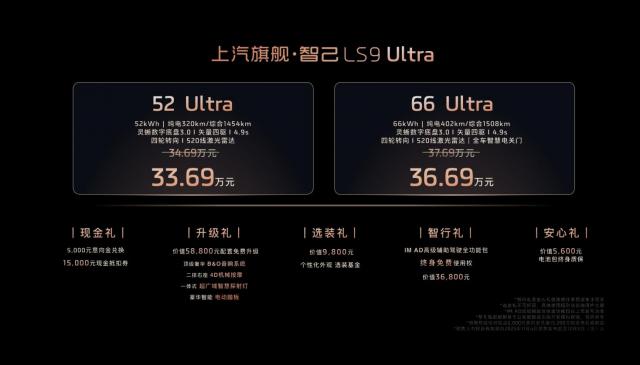 11月4日,上汽旗舰·智己LS9全球首发并开启预售。新车推出两个超级增程版本,全系都是Ultra版,其中52 Ultra版预售权益价33.69万元,66 Ultra版预售权益价36.69万元。作为汇聚上汽集团70年造车底蕴、融合全球顶尖技术的旗舰车型,智己LS9凭借“两大跨代际硬核科技 + 两大智能时代最强创新”的实力,颠覆了30万级大六座SUV市场格局,宣告9系新王诞生!