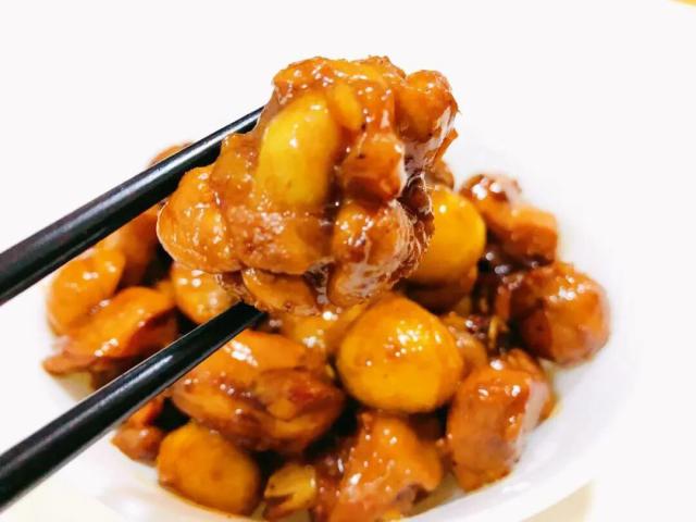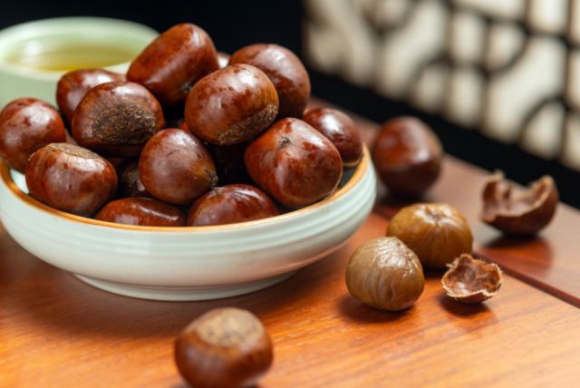 糖炒栗子吃多了会腻,可买生栗子,蒸煮熟后去皮,做栗子炖排骨、板栗烧鸡、板栗红烧肉。烹调时加糖可让栗子淀粉糊更粘糯,加盐可降低粘度,调整糖盐量能让栗子口感在糯和面之间切换。