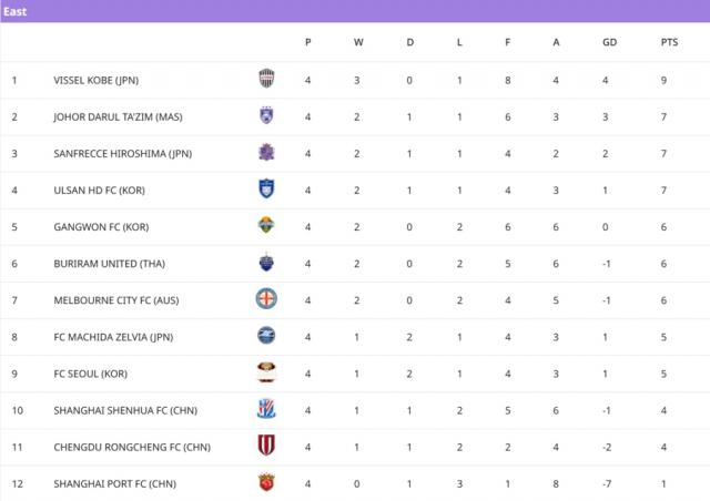 尴尬!申花亚冠客场落败,中超前三在亚冠积分榜集体垫底