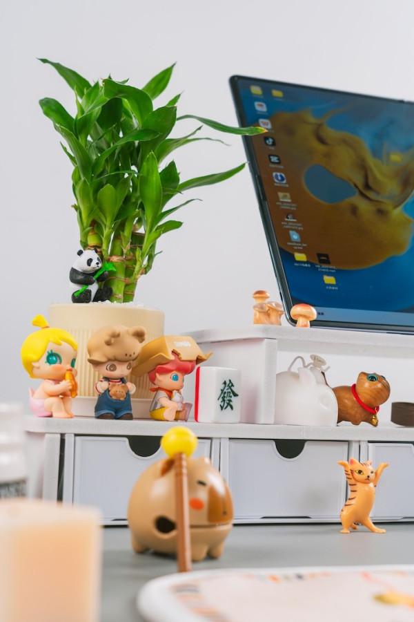 除了实用的收纳和电子产品,摆几盆绿色植物有助于缓解看屏幕的眼疲劳,还能让桌面更有生机。