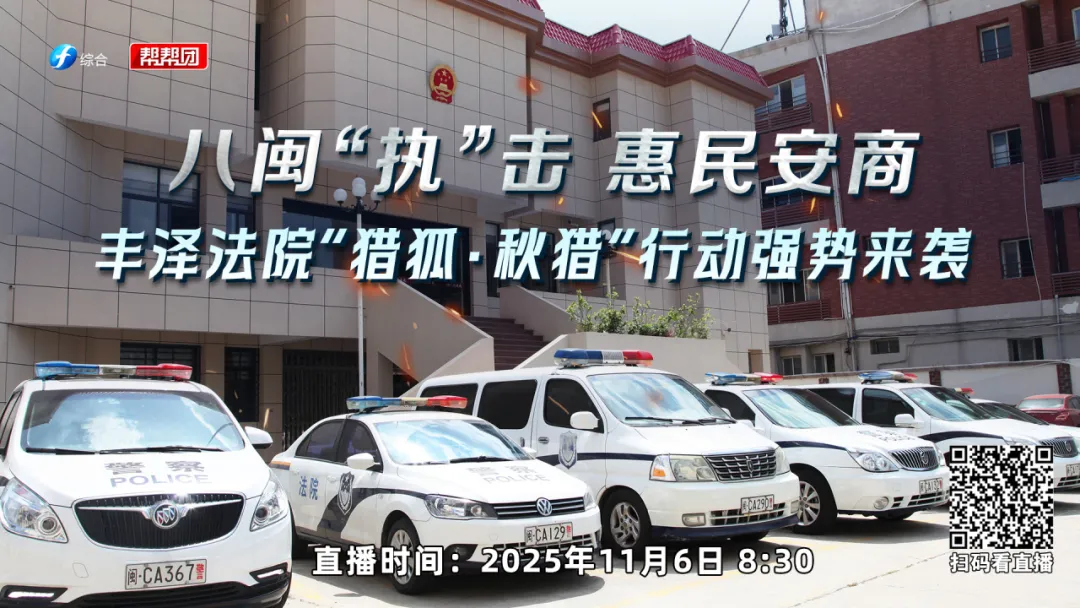 11月6日上午8时30分,丰泽法院将开展“猎狐•秋猎”统一执行行动!此次行动聚焦涉民生、涉企案件,旨在“惠民”守护、安商“暖企”。邀您锁定丰泽法院官方微信公众号、福建电视台综合频道“第一帮帮团”,见证执行道路上的“速度与激情”。