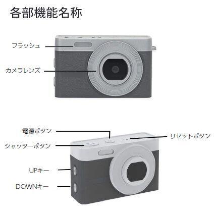 机身上有电源按键、快门按键、复位按键和上下翻页键。