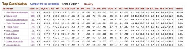 美媒公布最新MVP概率:SGA、约基奇、字母哥前三,文班第4,里夫斯第6