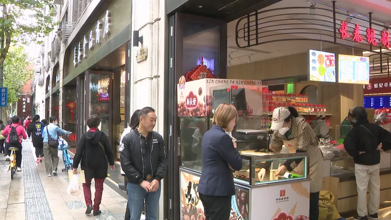 在淮海路的老字号长春食品商店门口,新长发糖炒栗子的摊位十分显眼,不断有市民游客前来购买。一些消费者买完后就迫不及待地剥开壳品尝。有消费者表示:“新长发很有名,我从小吃到现在,一直信赖这个牌子。”还有人评价:“栗子很糯,有点甜味,水分也足,很好剥。”