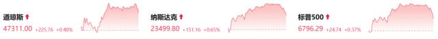 美东时间周三,美股三大指数均收涨。其中,纳指涨幅为0.65%,道指上涨0.48%,标普500指数涨幅达0.37%。