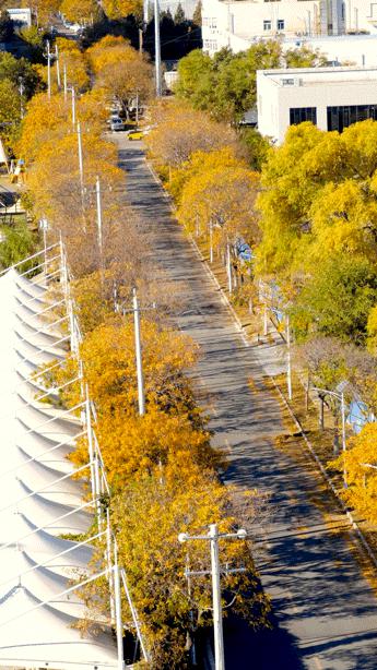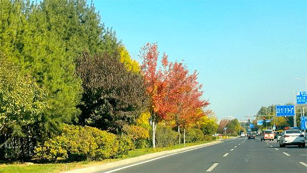 作为贯通顺义南北的主要干道之一,通顺路有着不一样的秋日节奏。道路中间的隔离带里,金黄的银杏、火红的枫叶和深绿的松柏相互搭配,共同奏响了一曲色彩的协奏曲。川流不息的车辆、写字楼玻璃幕墙上映出的蓝天,现代都市的活力与自然的秋意在这里完美融合。