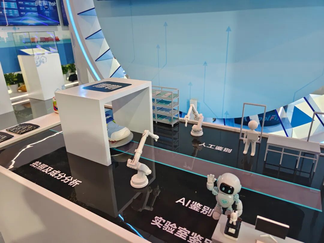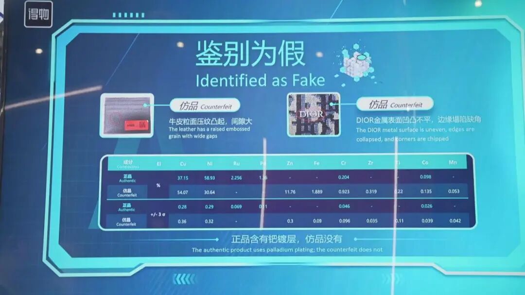 包丞益把卡包放在现场用于演示的“人工智能查验鉴别系统”上。“检测平台搭载的工业级高清相机启动后,会围绕卡包的胸针细节、表面Logo、牛皮材质纹理等核心鉴别点,进行360度‘无死角’高清拍摄。”包丞益介绍道。