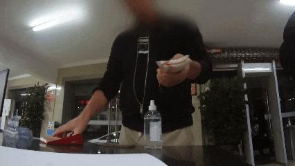 他们买完零食,连蹦带跳地走出店门时,突然一个红包“从天而降”,一大沓百元大钞应声散落。