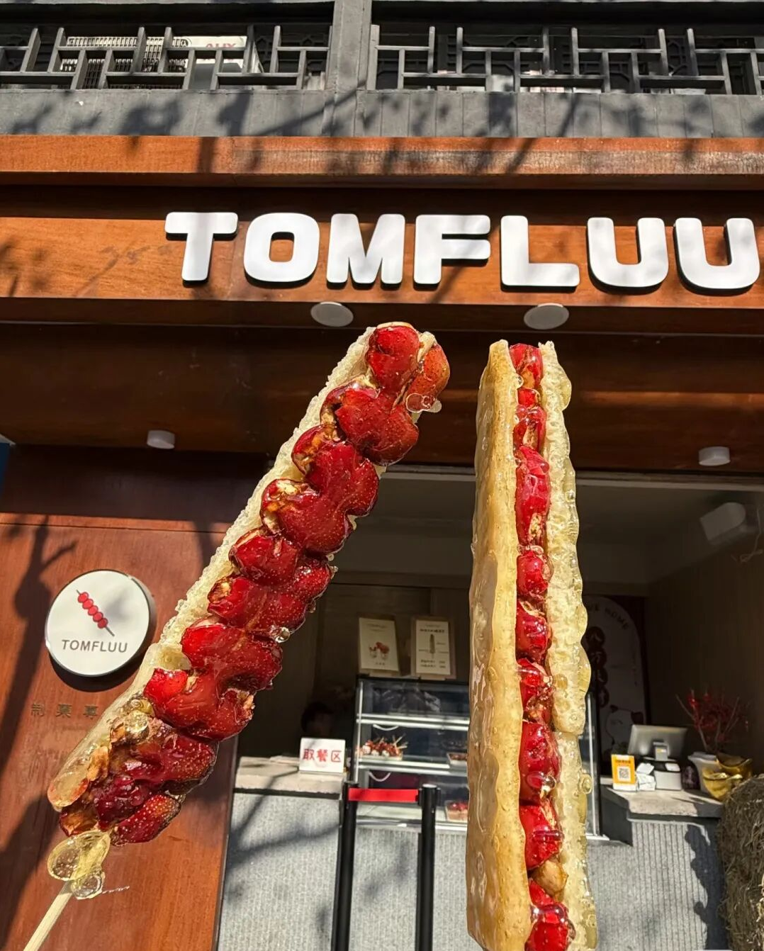 还有更创新的“全能型”:把山楂换成阳光玫瑰、草莓,甚至无花果、菠萝蜜、榴莲;中间填上干酪酸奶,最后再贴一层奶皮子,几乎集齐了所有网红元素。