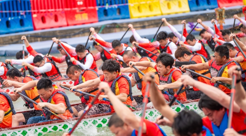 桨片飞舞,浪花奔腾,鼓点激昂,喊声震天……