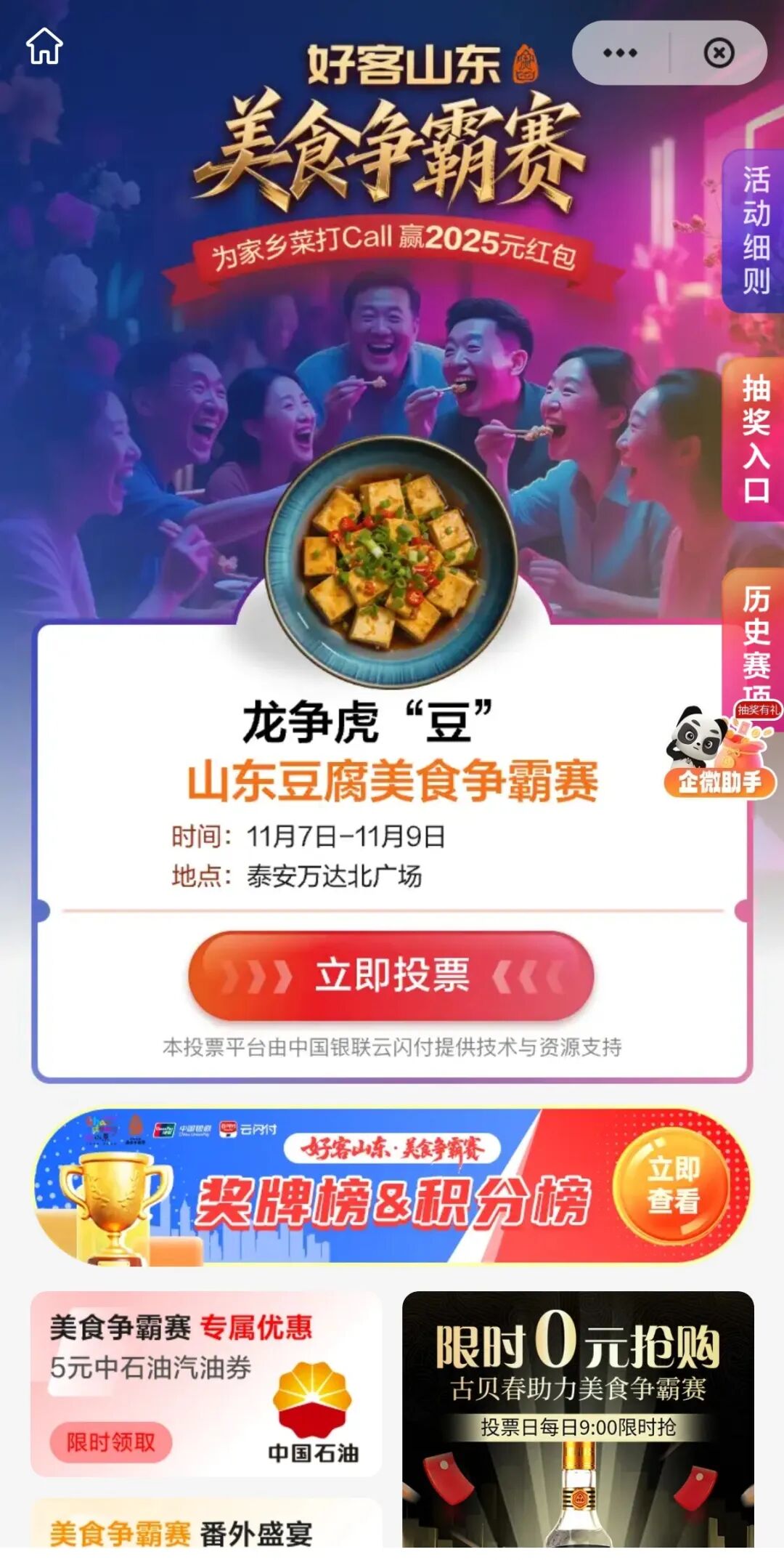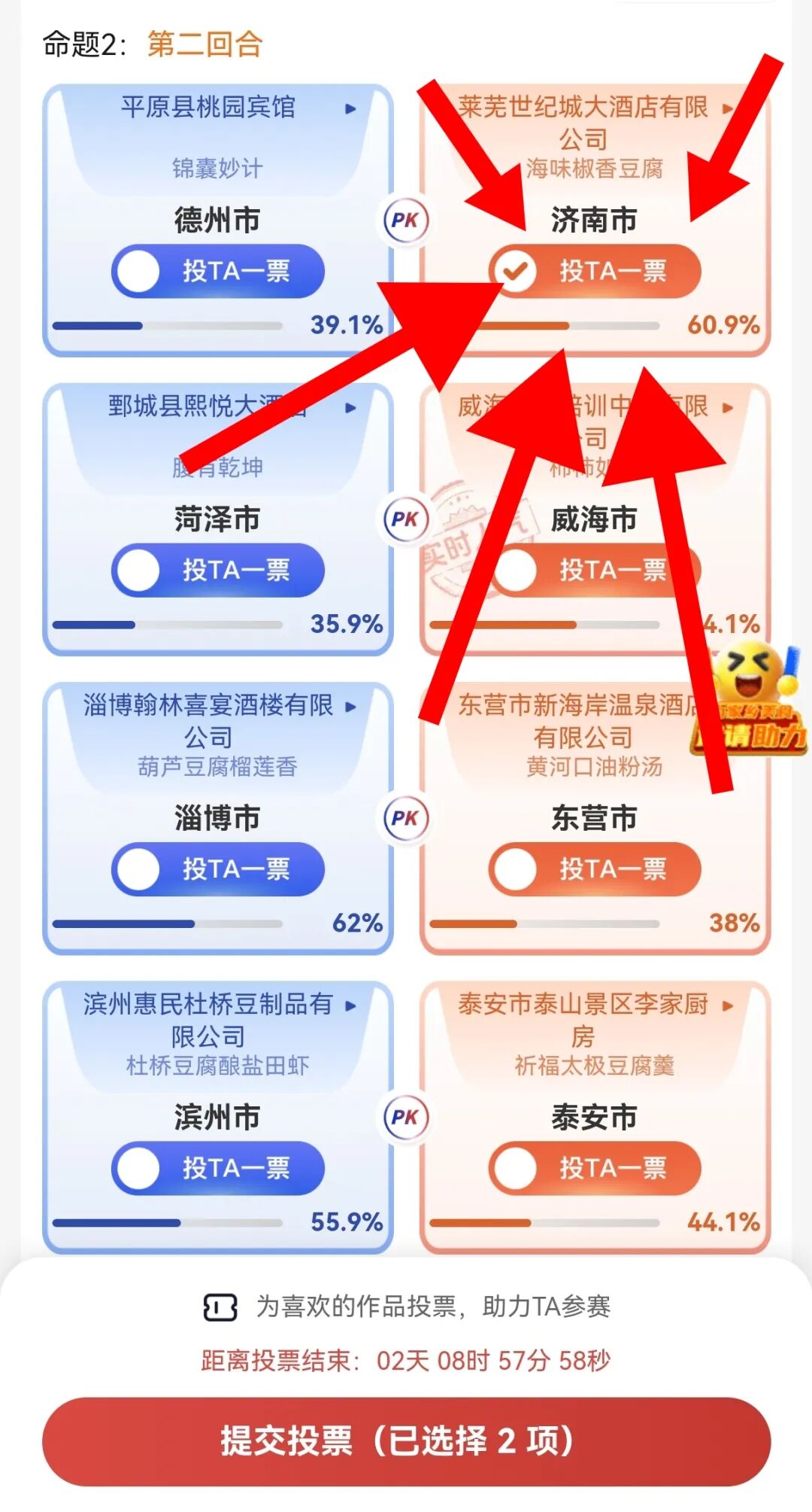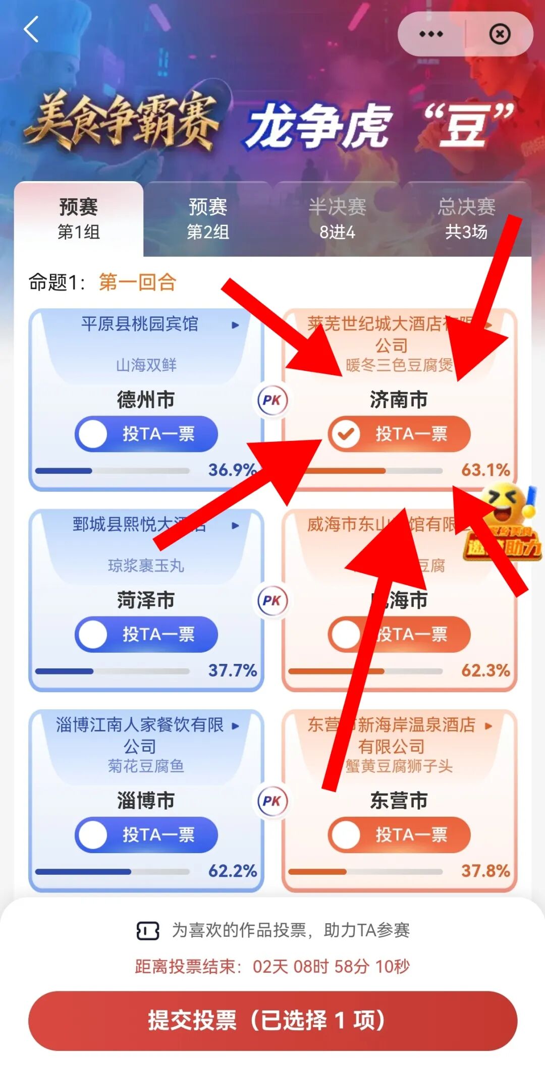 选择“龙争虎'豆'山东豆腐美食争霸赛”,点击“立即投票”。