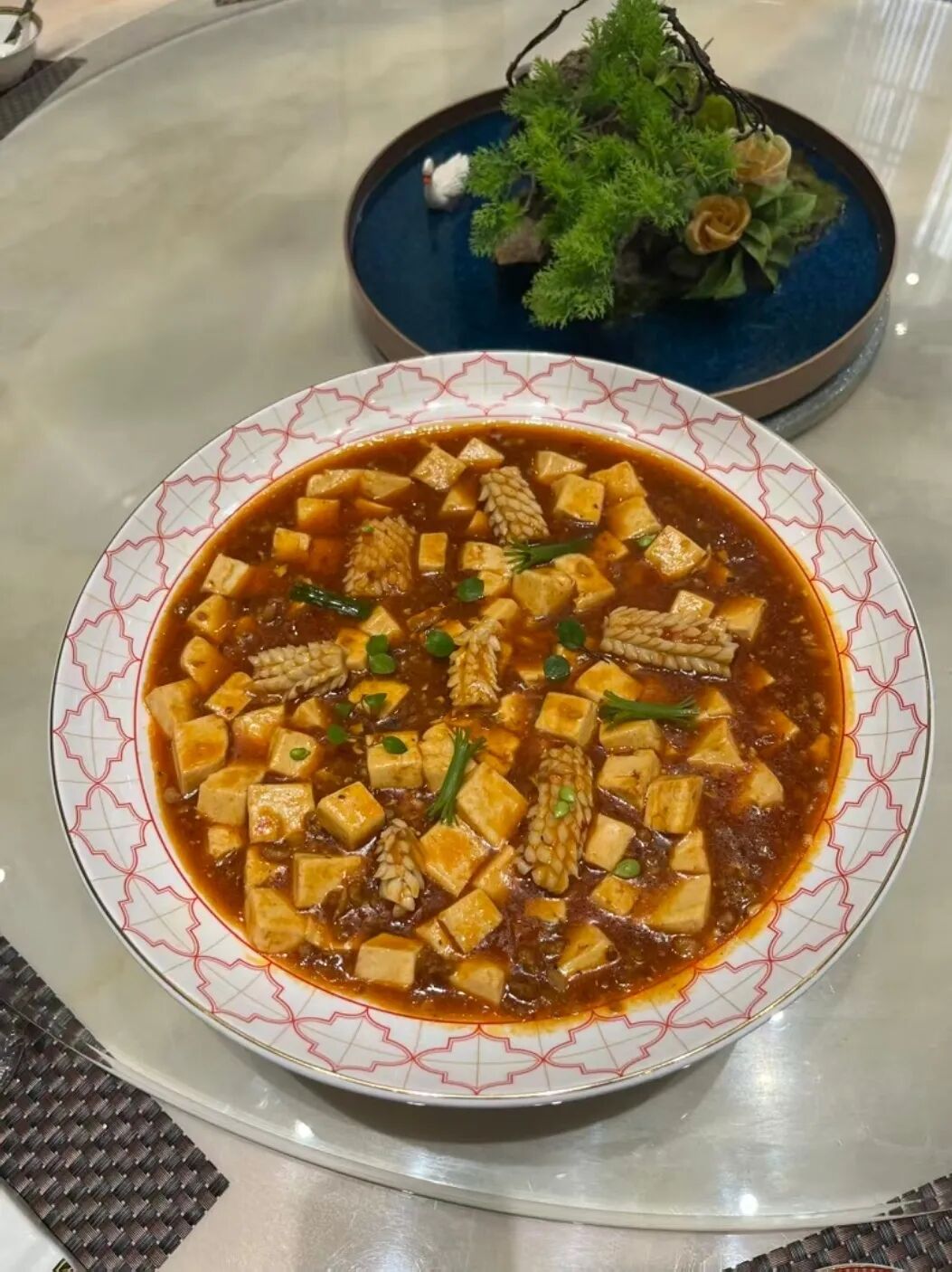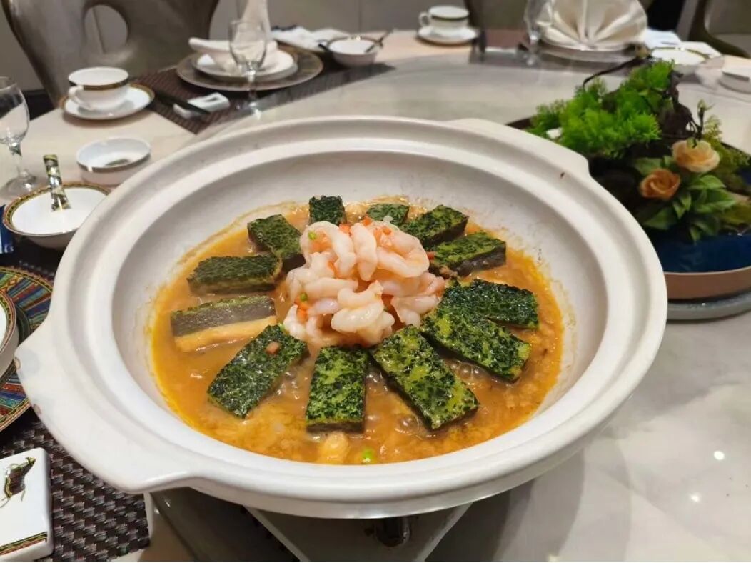 选取“泰安三美”之魂——泰安豆腐,其质地细嫩如美玉,豆香浓郁纯正,久煮不散且风味更显。搭配鲜鱿鱼、干贝等海味珍品,融入高汤。出锅前,用热油激发花椒粉香气,瞬间焦香四溢,嫩滑豆腐裹上一层诱人麻辣外衣。