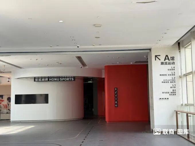A馆由B2停车场、B1和地上4层商业楼层组成,体量不大且是‘大店模式’,空置率不高,仅二楼有三个空铺。地下1层只有一家KK桌球俱乐部,地上1层是迪卡侬,地上4层是宏优体育,地上3层一半是博纳影院,一半是宏优体育,地上2层有GAPDAY健身等三个品牌营业,还有3个空铺,包括已关闭的海伦司小酒馆。