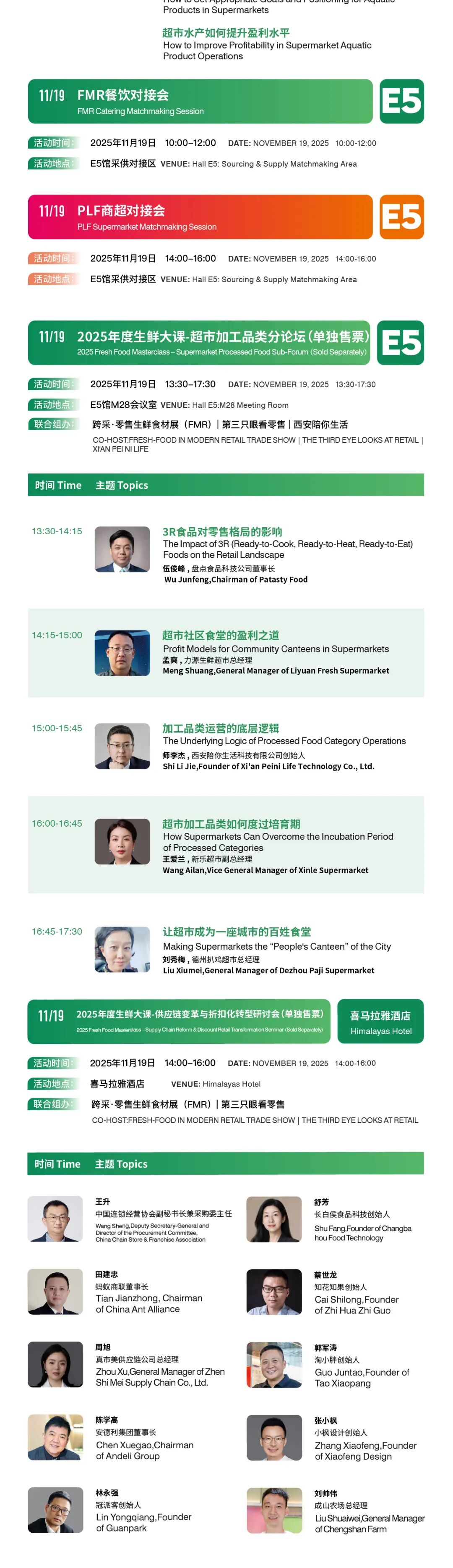 · 展会期间将举办六大主题对接会,分别是“华商联采对接会”“FMR零供对接会”“PLF浙闽零供对接会”“FMR餐饮对接会”“PLF商超对接会”以及“PLF电商对接会”。诚挚邀请各参展商按照对应时间参与洽谈。