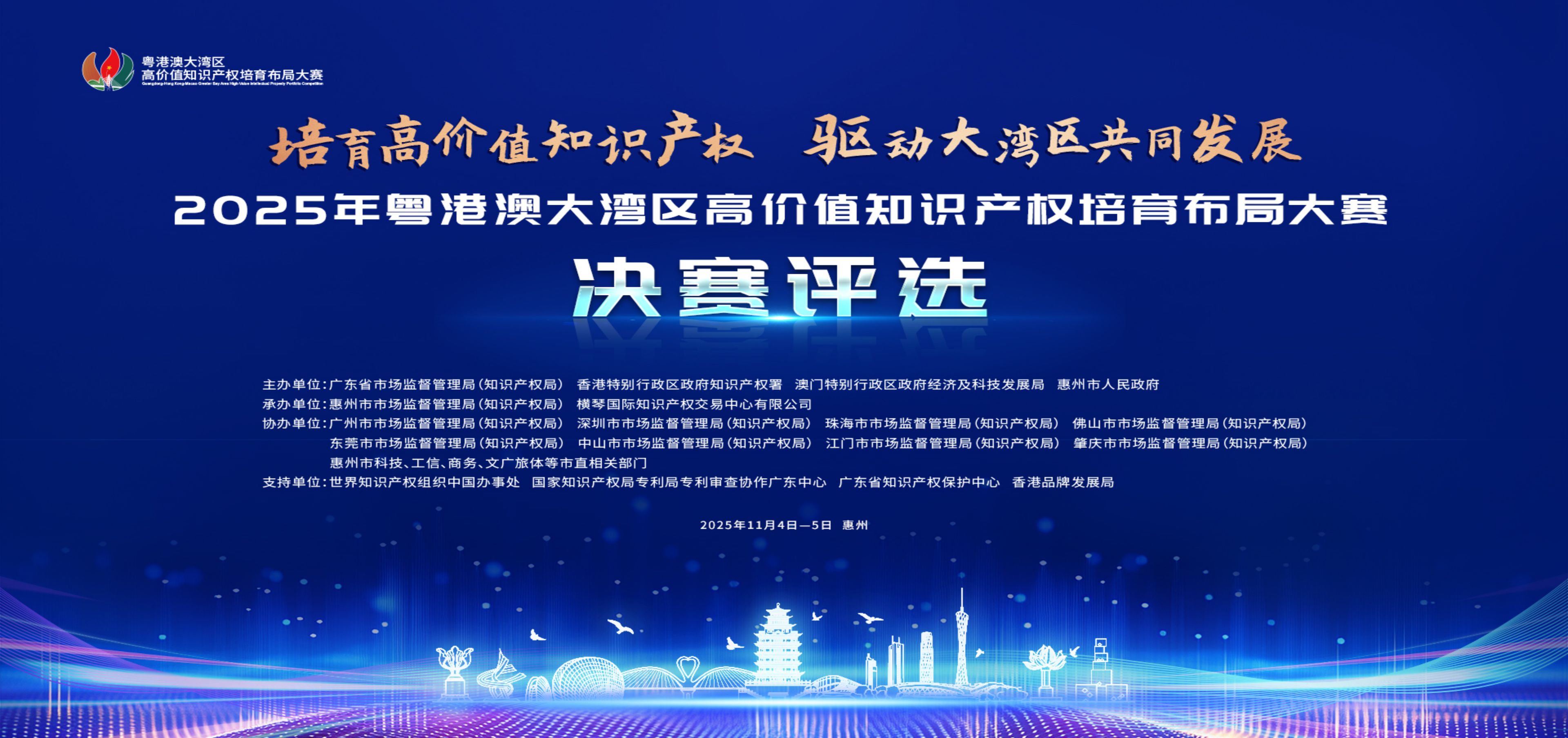 11月4日至5日,2025年粤港澳大湾区高价值知识产权培育布局大赛(以下简称“湾高赛”)决赛在惠州盛大举行,此次大赛集中展示了粤港澳大湾区在战略性新兴产业和品牌创新领域的丰硕成果与广阔前景。