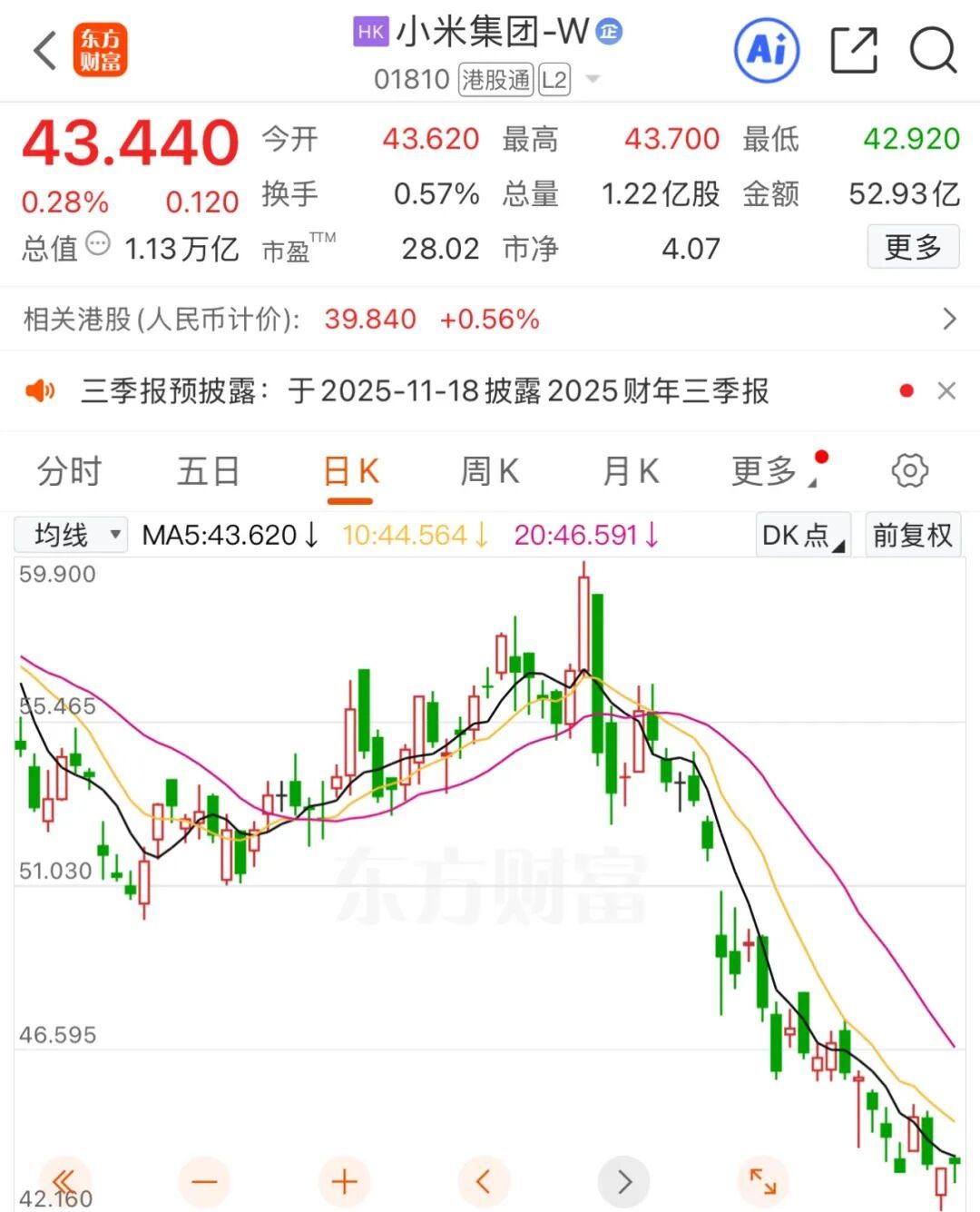 小米将于11月18日公布季度财报。过去几个月,小米股价持续受压,截至目前,较最高位回调近30%。