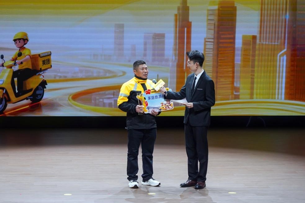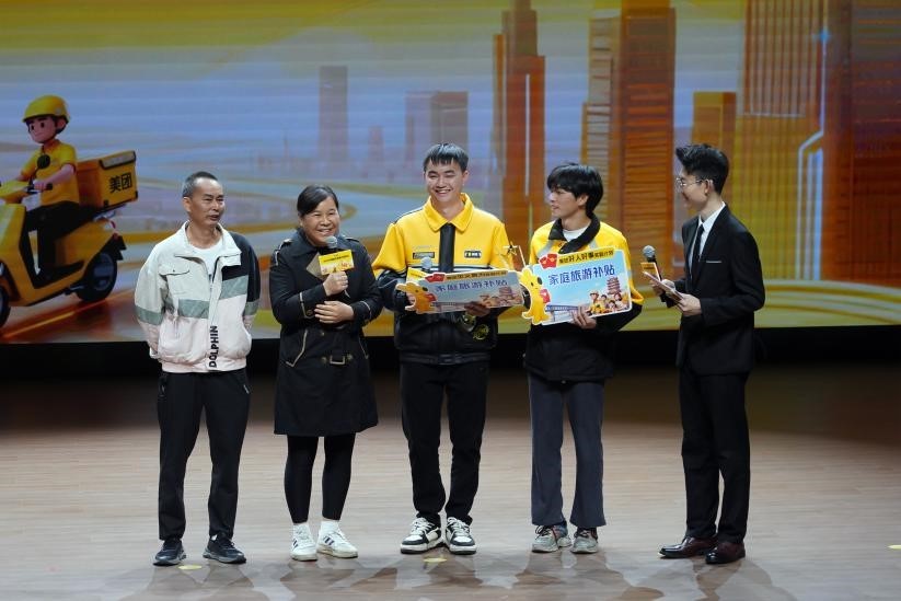 孟世祥等13位骑手获得了由美团颁发的家庭旅游补贴。