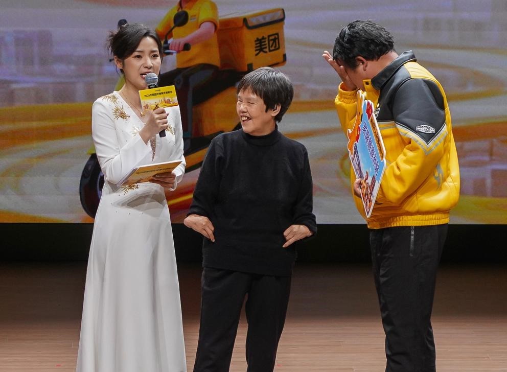活动现场,潘大姐上台对照顾她十余年的骑手司照天表示感谢。
