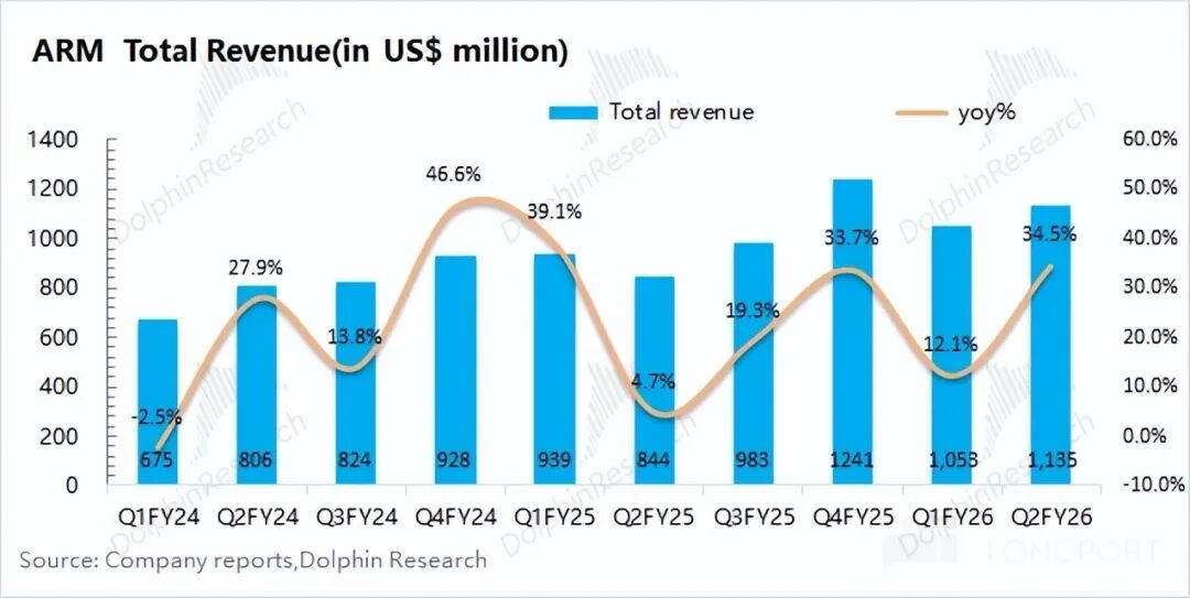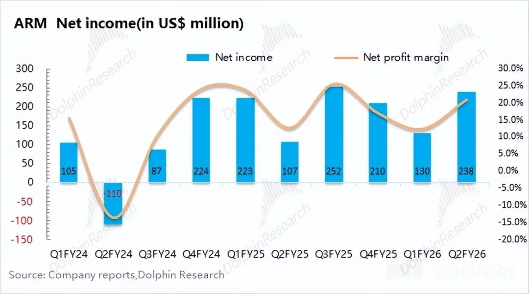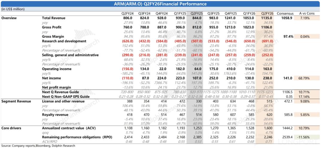 ARM(ARM.O)于北京时间2025年11月6日上午美股盘后,发布了2026财年第二季度财报(截止2025年9月),要点如下: