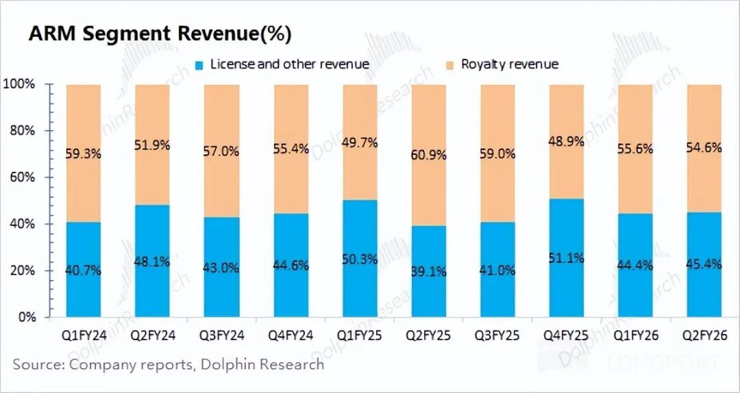 5、下季度指引:ARM预计2026财年第三季度营收为11.75 - 12.75亿美元,区间中值(12.25亿美元)环比增长8%,好于市场预期的11.1亿美元;预计Non - GAAP的EPS为0.37 - 0.45美元,好于市场预期的0.35美元。