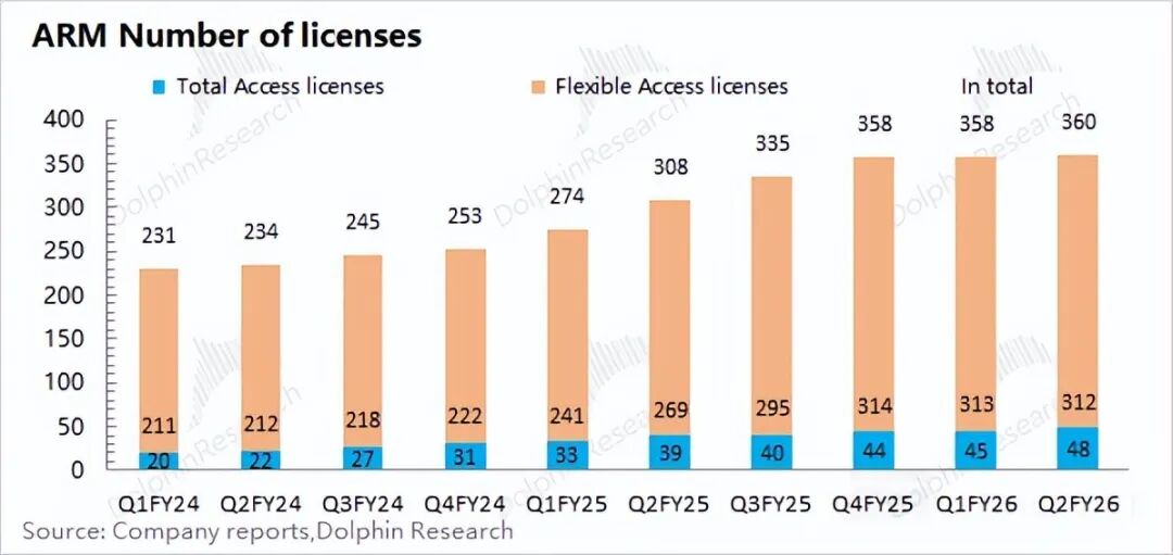 综合上述三项指标,海豚君认为ARM当前经营状况良好,呈稳步上升趋势。虽RPO不及预期,但在ACV稳步增长的情况下,这种“不及预期”可以接受。短期订单占比较高,也反映了公司客户在AI等领域的迫切需求。