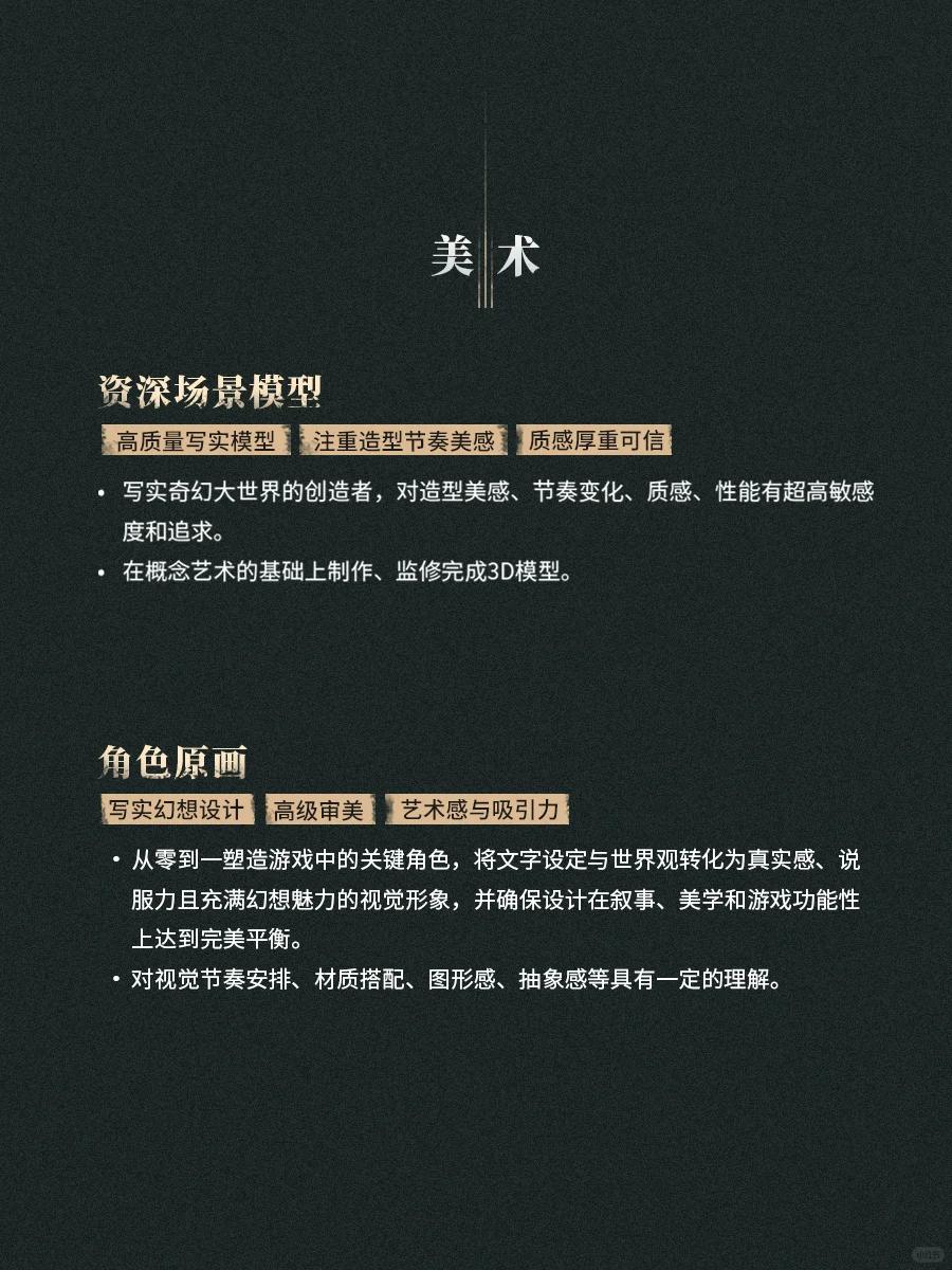 招聘岗位覆盖策划、美术、程序、综合四大职能。从岗位需求描述来看,“极高品质”和“超高敏感度”是米哈游此次招聘提及最多的关键词,可见这款写实奇幻新品对人才能力的要求直指游戏行业技术力顶峰。