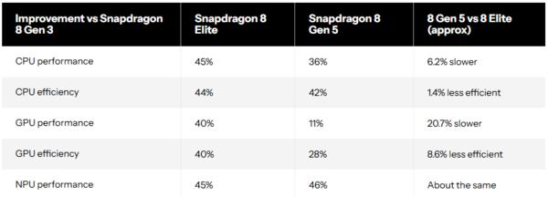 高通在宣传中直接将骁龙8 Gen 5与2023年的骁龙8 Gen 3进行对比:CPU性能提升36%,能效提升42%;GPU性能提升11%,能效提升28%。若和2024年的骁龙8至尊版相比,骁龙8 Gen 5的CPU性能大约低6.2%,GPU性能则落后约20.7%。这表明新平台在日常使用和AI任务处理上的表现接近去年的旗舰级产品,但在极限图形负载场景下与第五代至尊版存在可感知的差距。