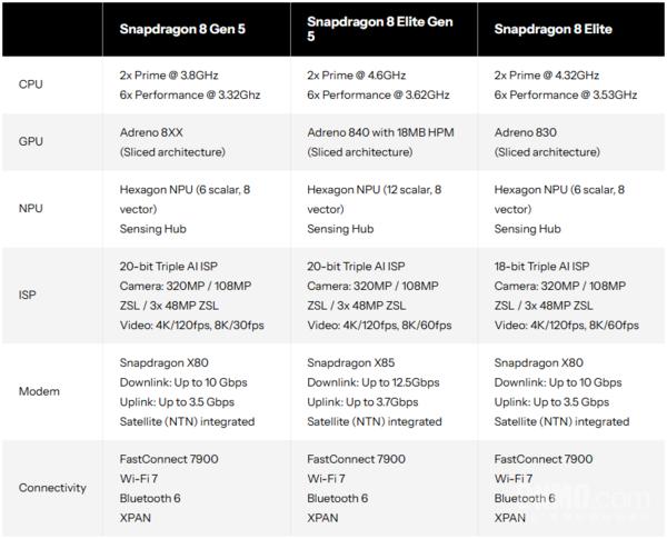 值得一提的是,骁龙8 Gen 5保留了不少高端特性,比如X80集成调制解调器(下行速率10Gbps)、WiFi 7、蓝牙6以及XPAN跨设备连接技术。预计搭载该平台的手机起售价会在3000元左右,为追求性价比的消费者提供接近顶级旗舰的使用体验。