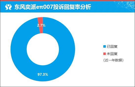 在衡量新车售后服务口碑时,我们通过企业对车主投诉的回复情况进行分析,相对客观地预判新车未来的售后服务口碑。据车质网数据显示,近一年东风奕派eπ007车型的投诉回复率为97.3%,可见厂家对车主诉求的重视程度较高。