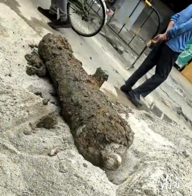 广东一工地挖出一门约2米长的大炮,初步鉴定为清代城防大炮。