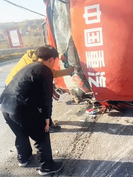 “司机的双腿被卡住动弹不得,胳膊和头上都在流血,身上还有多处擦伤。他见到我第一句话就问‘油箱刚加满,会不会爆炸?’”李骅谕回忆道。他围着货车检查一圈后,告诉司机油箱暂时没有泄漏风险,随后徒手尝试掰开碎裂的挡风玻璃,想尽快救出被困司机。