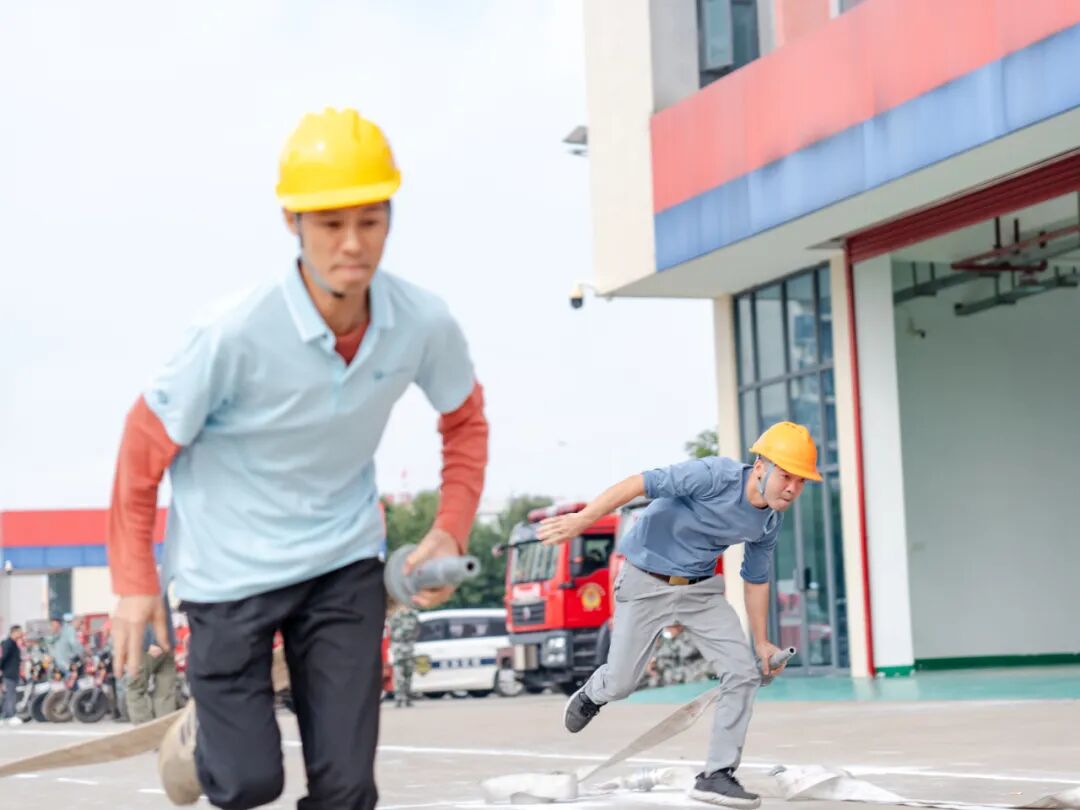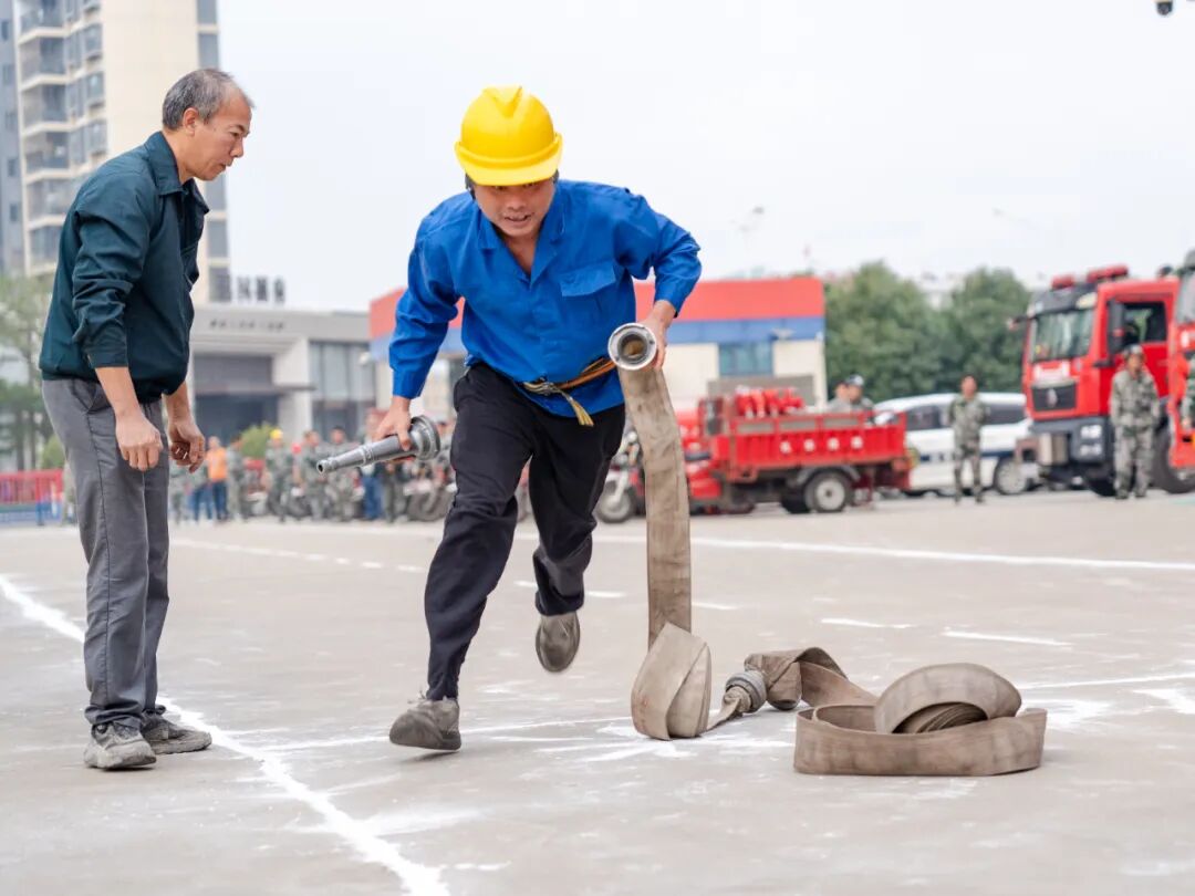 据悉,本次竞赛设置村工联会组“90米灭火操”与企业工会组“4×50灭火接力”两大项目,既贴近日常消防场景,又能检验团队协作与应急反应能力。