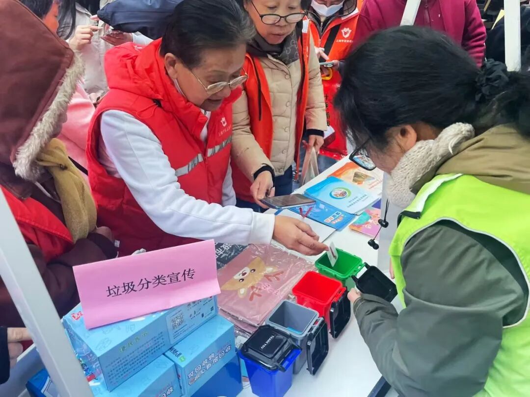 市集同时融入了便民服务环节。长宁区市场监管局设立“你点我检”快检台,向居民和白领普及食品安全知识;东浜五色志愿者驿站同步开展垃圾分类互动宣传,倡导绿色环保的生活新风尚。