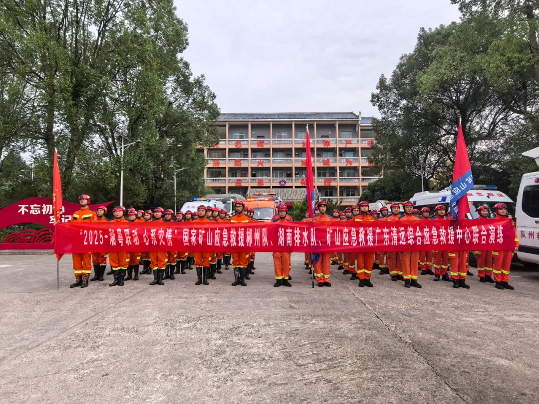 为切实提升区域协同应急救援能力,12月2日至3日,国家矿山应急救援郴州队、国家矿山应急救援湖南排水队携手清远市综合应急救援中心,于广东省矿山救援清远基地开展了主题为“2025·湘粤联动、心系灾情”的跨省联合应急救援演练。