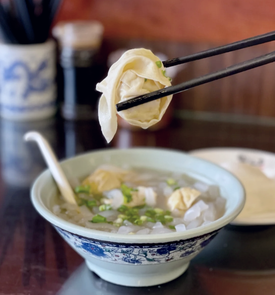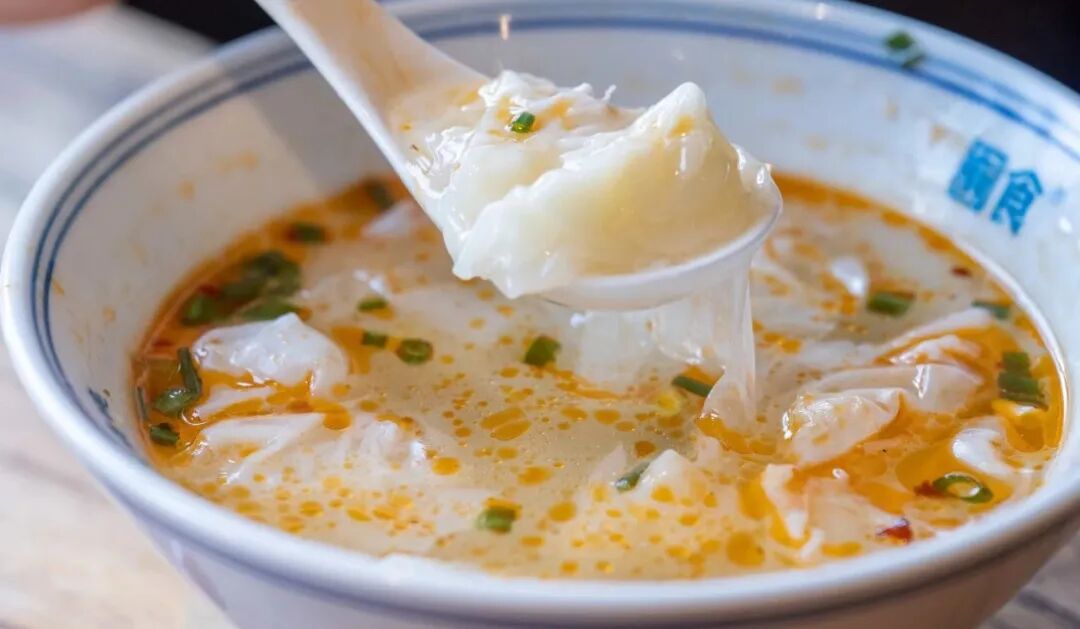 湖州小馄饨皮薄如蝉翼,薄得透光,在热汤中翻滚后,口感软而筋道。要说它的灵魂,还得是那勺现炸辣油,鲜辣中带着江南的水灵劲儿,红润透亮却不腻。就着热汤把馄饨吸进嘴里,辣味在舌尖绽开,让人连吃三碗都不过瘾。
