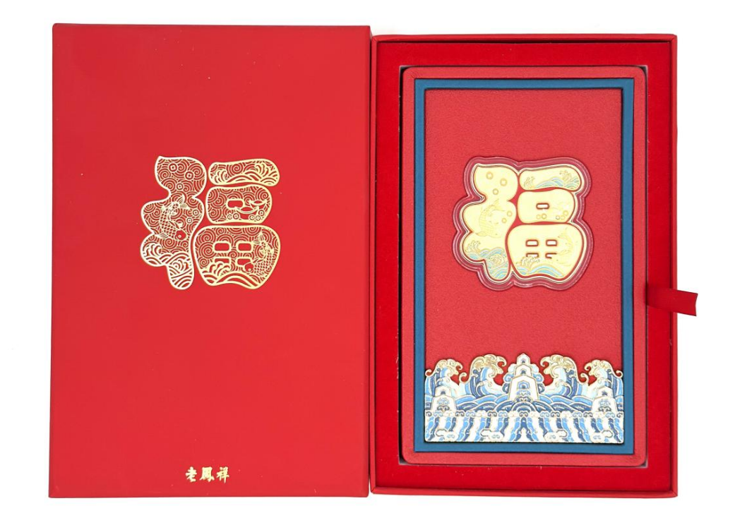 “福如东海”礼品摆件将红色底座、金色“福”字与蓝白海浪纹巧妙结合,既展现了珐琅工艺丰富的色彩层次,又传递了传统“福”文化的美好寓意,成为收藏与馈赠的佳品。