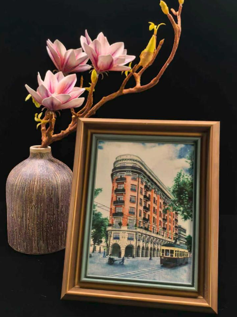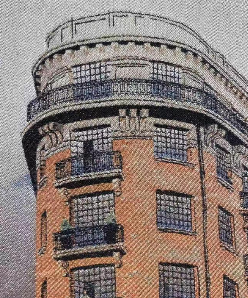 武康大楼系列织锦画巧妙融合建筑地标元素与传统织锦工艺。