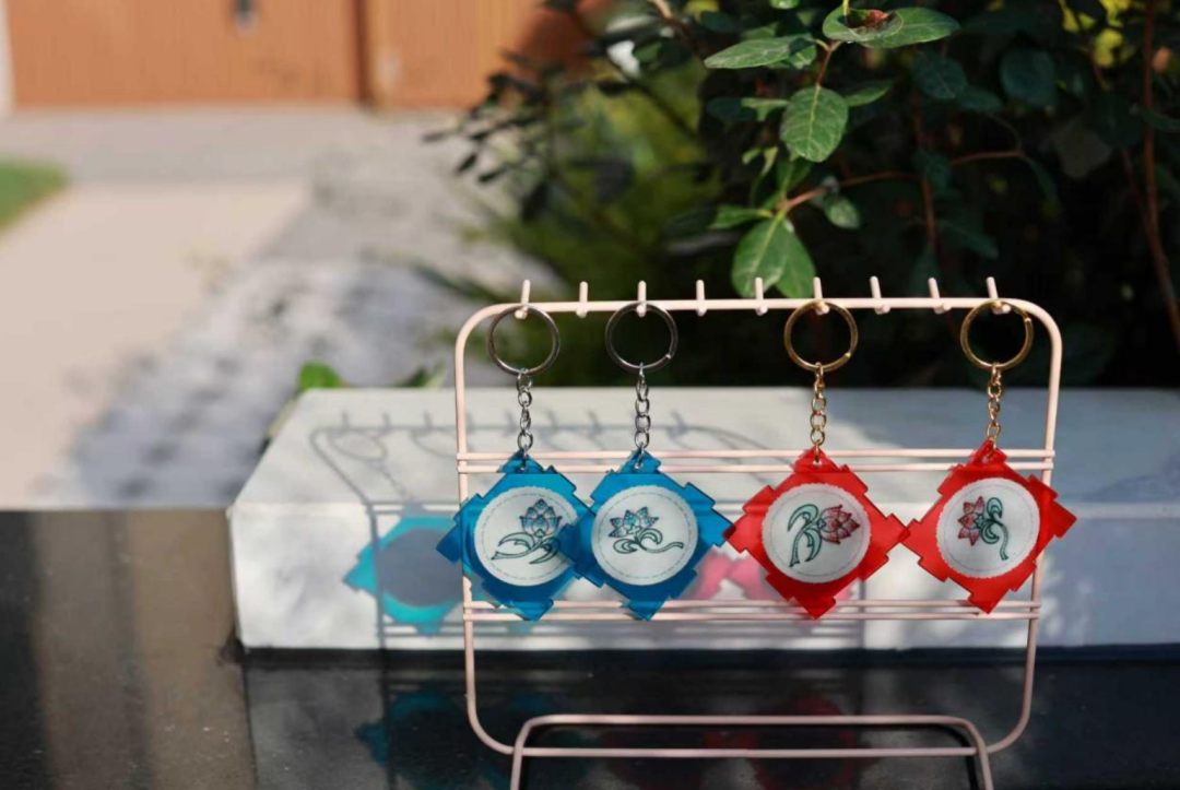 “荷花”系列亚克力文创作品实现了一物多用的功能,拆开可作为钥匙扣,组装后能充当收纳盒、笔筒。这两款拼图文创作品兼具空间思维训练与互动趣味性,为使用者打造沉浸式的益智体验。