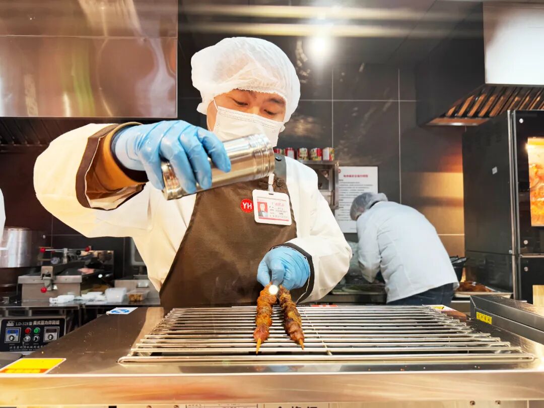 走进生鲜区域,安格斯牛肉、潮汕牛肉、本地肉禽等优质蛋白食材齐聚;黄海、渤海的时令渔获,搭配帝王蟹、乳山生蚝等组成了丰富的海鲜矩阵;新疆蜜瓜、西梅等特色水果借助高效物流,能在72小时内从产地直达货架。熟食区引入了胖东来同款的去骨猪蹄、小甜肠、牛肉干等网红产品,还新增了现烤羊肉串、北京烤鸭、韩式炸鸡等热门风味美食。烘焙区则与中粮、安佳等优质供应商展开战略合作,草莓盒子蛋糕、半斤装榴莲千层蛋糕,以及现烤现卖的“丰收的喜悦”健康欧包、“核桃满满”乳酪面包等多款产品集中陈列。同时,门店还精选了超百款核心民生单品,切实让利消费者。