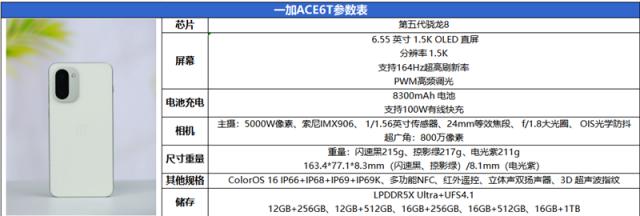 作为性能旗舰,一加 Ace 6T 在性能、散热和续航上全面领先,拍照虽非重点但主摄表现可靠。