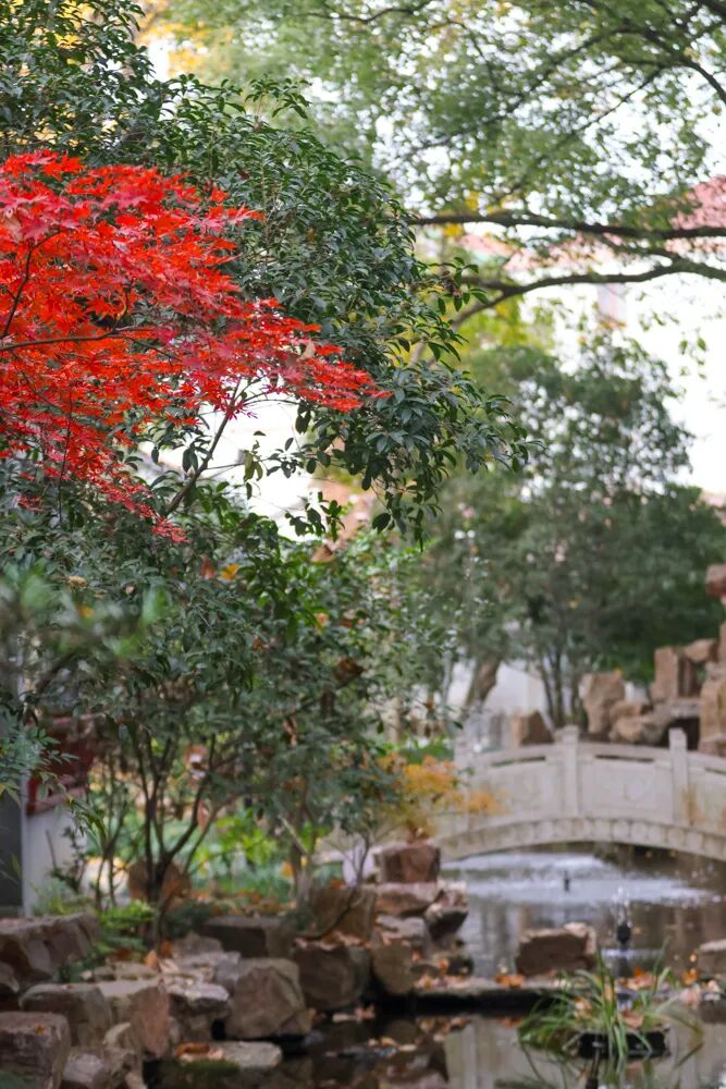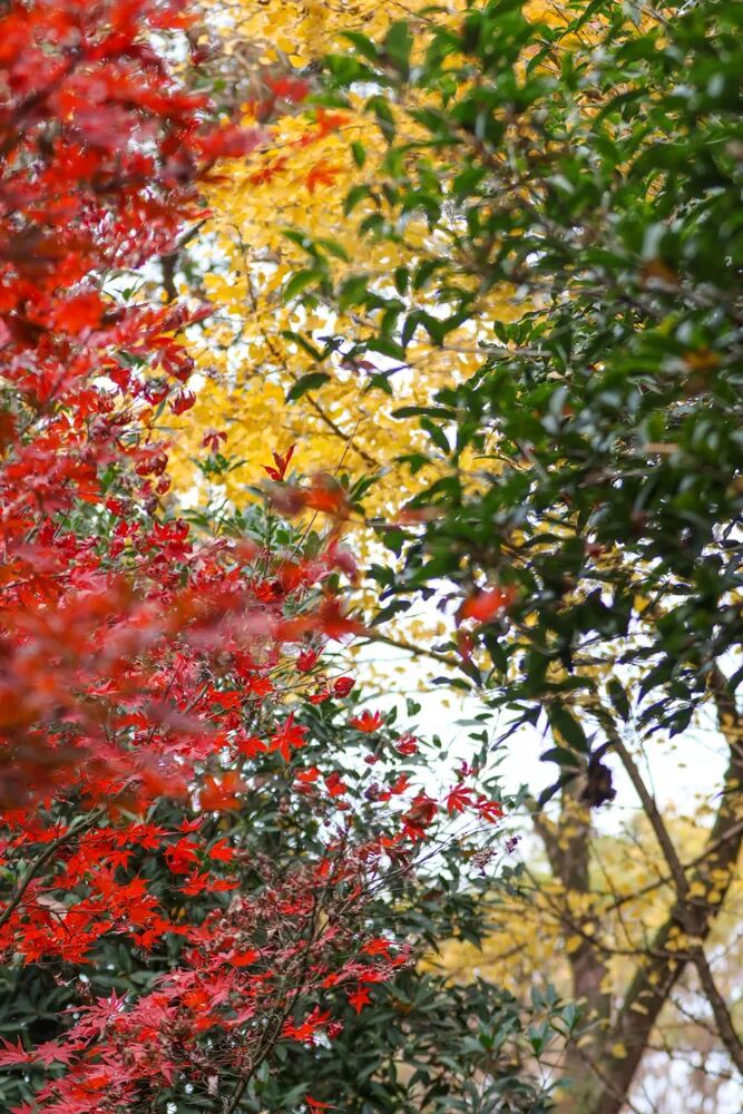 秋日之美,在于色彩的交融与呼应。走进张堰公园,便仿佛置身一场静谧的盛宴。银杏尽情挥洒纯粹的金黄,枫树燃烧着深沉的绯红,而常绿树木仍坚守着夏日最后的约定。