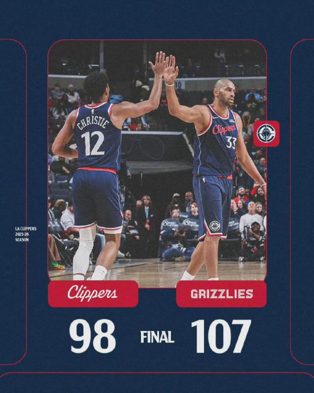 即便没有保罗坐镇,快船依旧未能摆脱失利阴影,以98-107的比分不敌灰熊,遭遇一场溃败。
