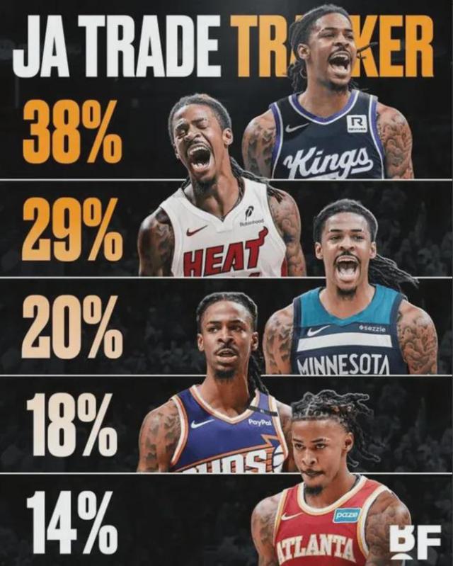 莫兰特目前执行的合同将在2028年夏天到期,本赛季薪资为3945万美元,接下来两个赛季的薪资总和为8706万美元,与他传出交易绯闻的球队包括森林狼、国王和雄鹿等。
