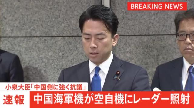 日本当地时间12月7日凌晨2时许,防卫大臣小泉进次郎召开临时记者会,称6日下午辽宁舰起飞的歼-15战斗机两次用雷达照射航空自卫队F-15战机,并向中方提出“强烈抗议”。