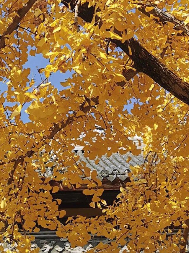 寺内银杏与殿宇相伴相生,早已融入僧人的袈裟与寺院墙体。深秋时节,银杏叶如金箔洒落,为古刹披上璀璨外衣。悠扬钟声中,脚踩金黄落叶,光影斑驳间诗意漾开,这绚烂金辉为魔都深秋绘就浓墨画卷,银杏以独特姿态默默守候禅土。
