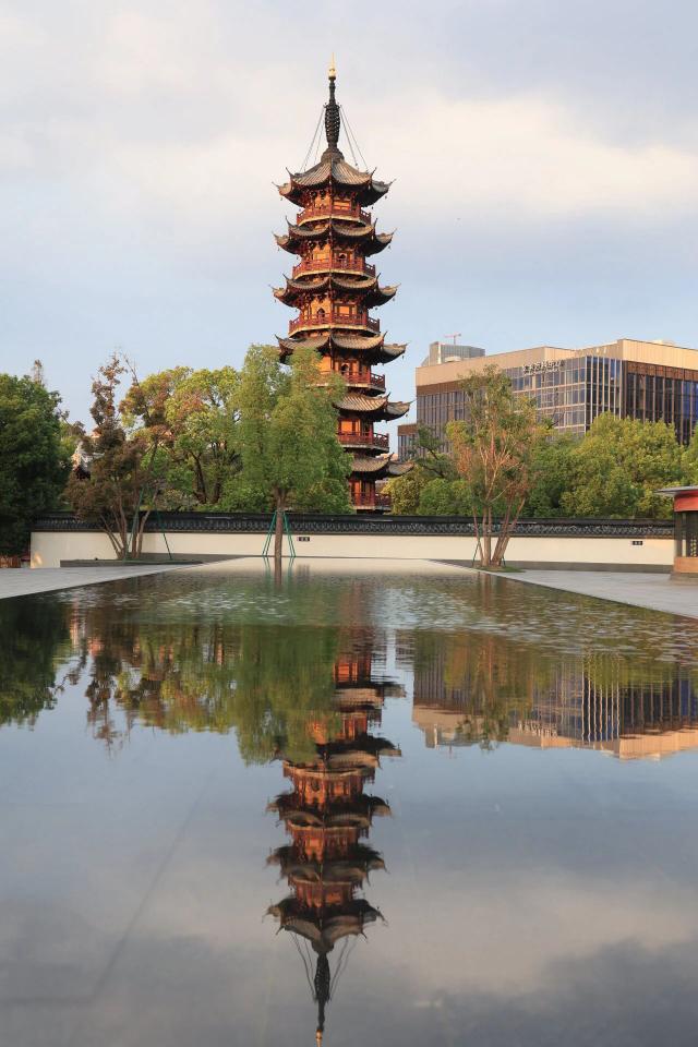 龙华寺作为江南名刹,历史可追溯至三国时期。"龙华"之名源自佛经中弥勒菩萨于龙华树下成道的典故。寺前七层八角的龙华塔,砖身木檐,是宋代楼阁式塔的典范,峻峭轮廓在岁月中始终清晰。古树与建筑相得益彰,历史与自然交融,勾勒出动人心弦的画卷。