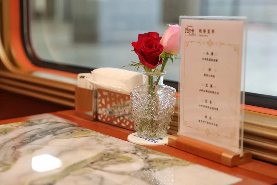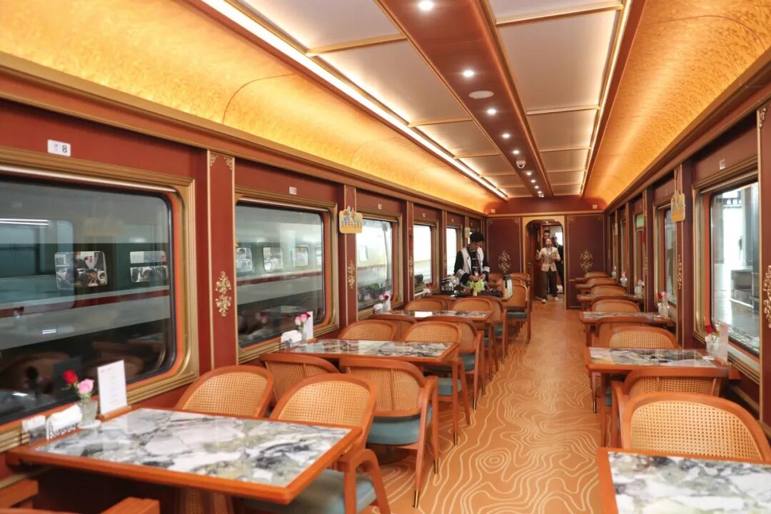 列车的餐车设有54个专属餐位,能提供多元化的餐饮选择。工作人员会提前收集旅客的饮食需求,为大家定制个性化的旅途餐食,让味蕾也能跟着旅行“打卡”。