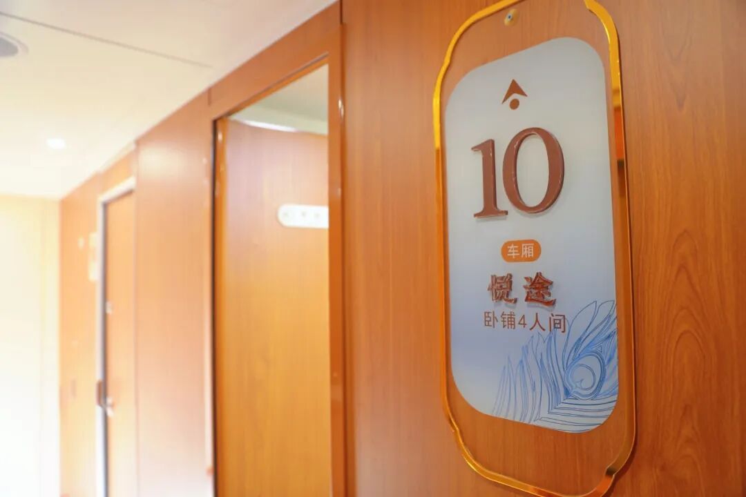 悦途品质四人间则有48间,房间内配备多功能折叠桌、铺位遮光帘、可调节阅读灯等实用设备。每节车厢还设有2个公共淋浴间、洗漱间和卫生间,方便旅客日常使用。