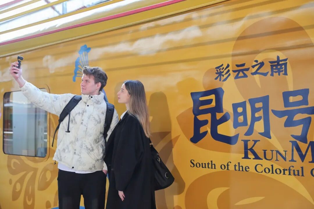 “彩云之南·昆明号”跨国旅游列车推出了特色中老铁路游览线路,采用“夜间行车+白天游览”的模式,让旅客在夜间安心休息,白天就能精力充沛地游玩沿线景点,实现“坐着火车一路走、一路玩”的惬意旅行。