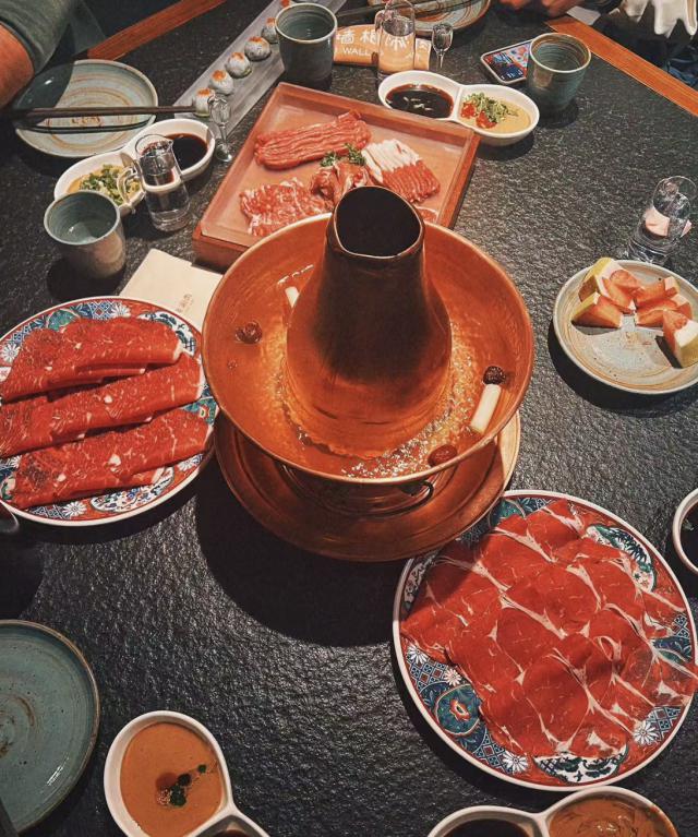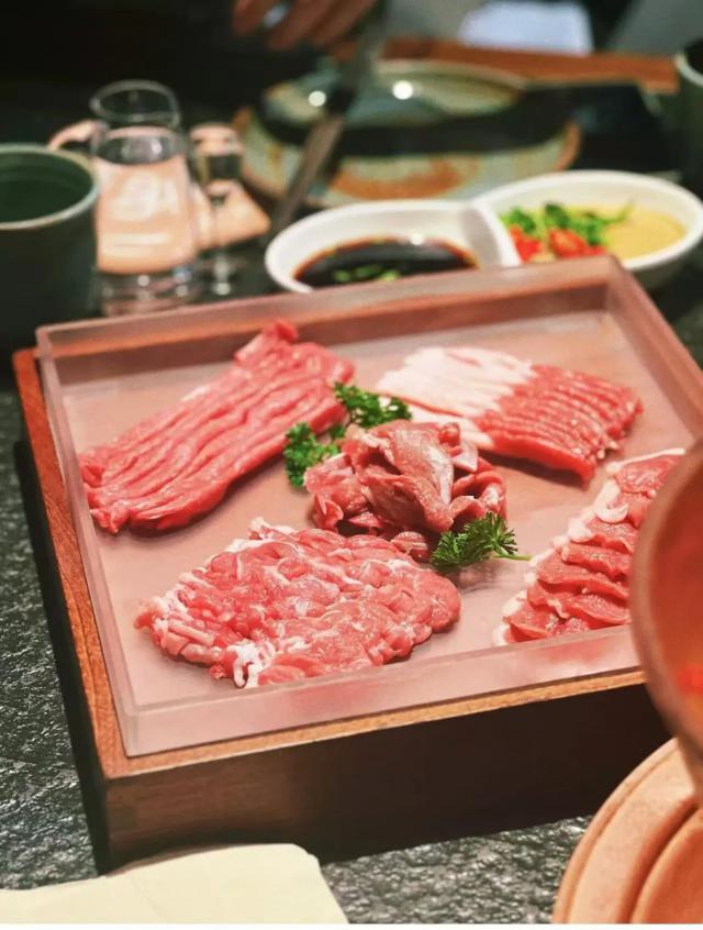 拿起筷子夹着红白相间、薄而不碎的羊肉片,